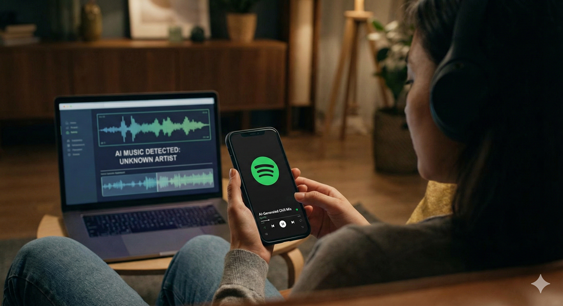AI-generated music is flooding Spotify and Apple Music without disclosure. Discover why 34% of daily uploads are synthetic, how "fake artists" earn millions, and why platforms like Deezer are starting to fight back.